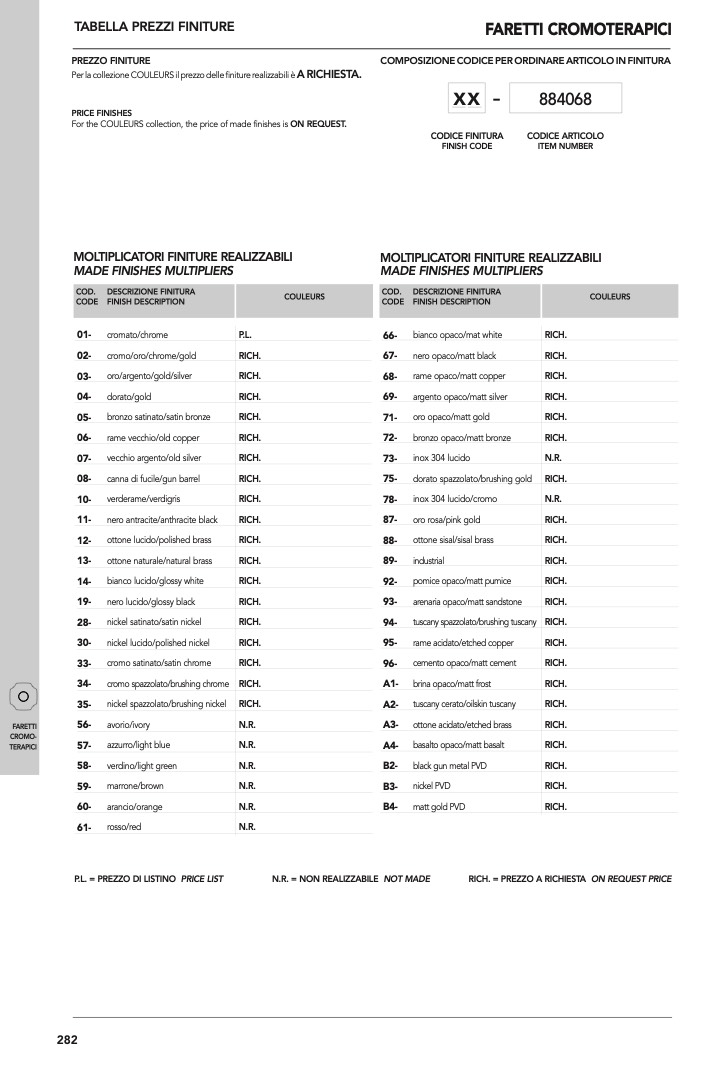 Per la collezione COULEURS il prezzo delle finiture realizzabili è