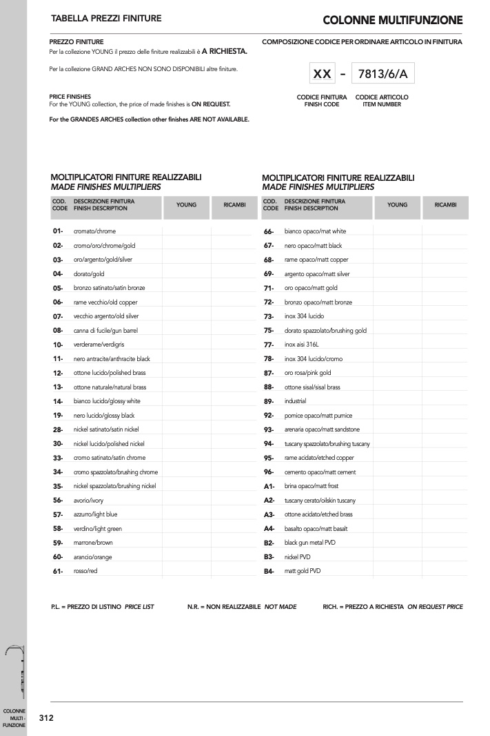 Per la collezione GRAND ARCHES NON SONO DISPONIBILI altre finiture.