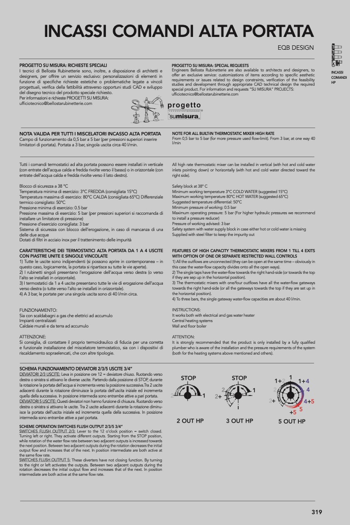 NOTE FOR ALL BUILT-IN THERMOSTATIC MIXER HIGH RATE