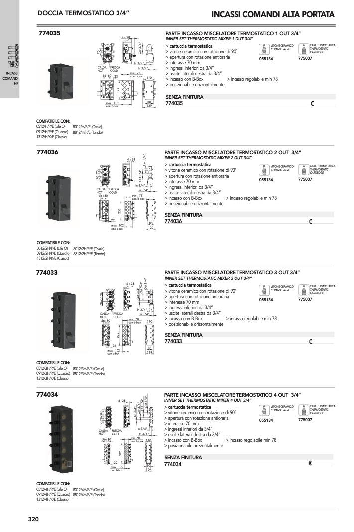 INNER SET THERMOSTATIC MIXER 4 OUT 3/4”