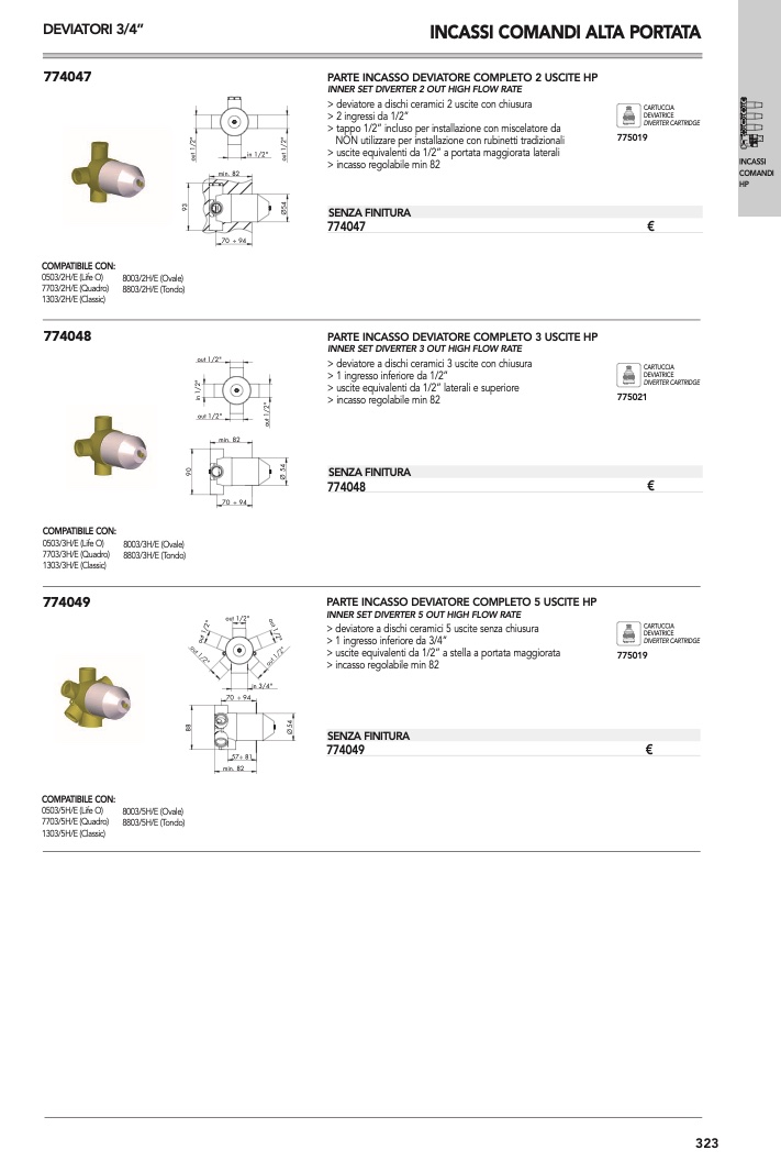 > uscite equivalenti da 1/2” laterali e superiore