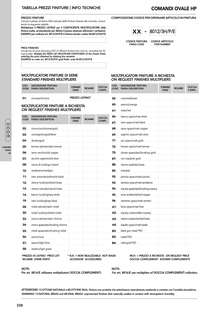 ESEMPIO per ordinare art. 8012/3H/P/E in finitura dorato: codice 04-8012/3H/P/E