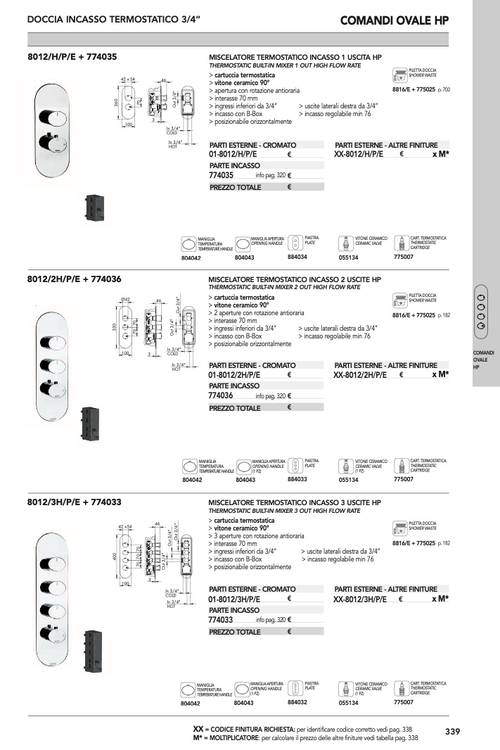 : per calcolare il prezzo delle altre finiture vedi tabella pag. 338