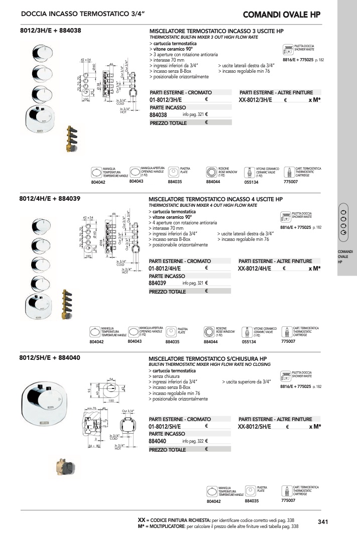 : per calcolare il prezzo delle altre finiture vedi tabella pag. 338