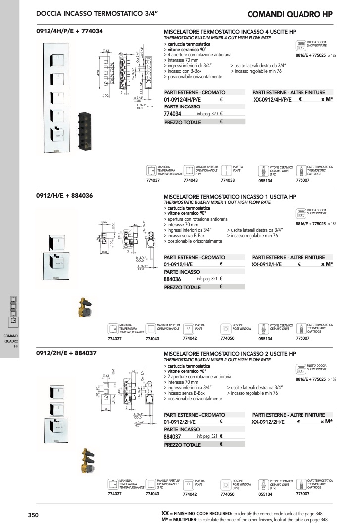 THERMOSTATIC BUILT-IN MIXER 4 OUT HIGH FLOW RATE