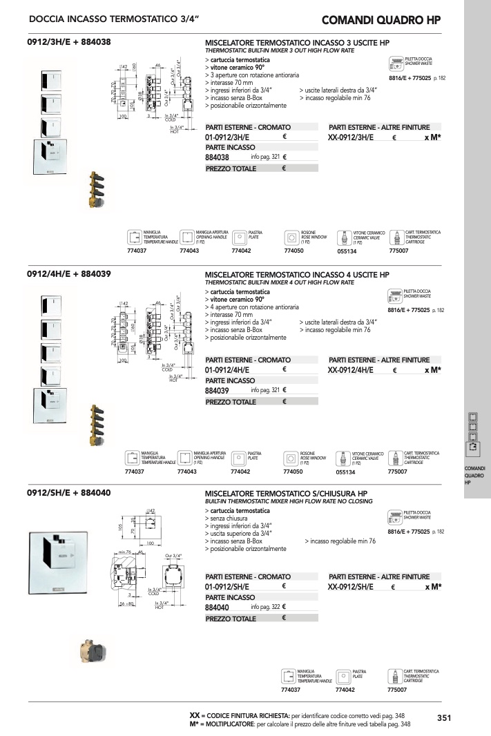 THERMOSTATIC BUILT-IN MIXER 4 OUT HIGH FLOW RATE