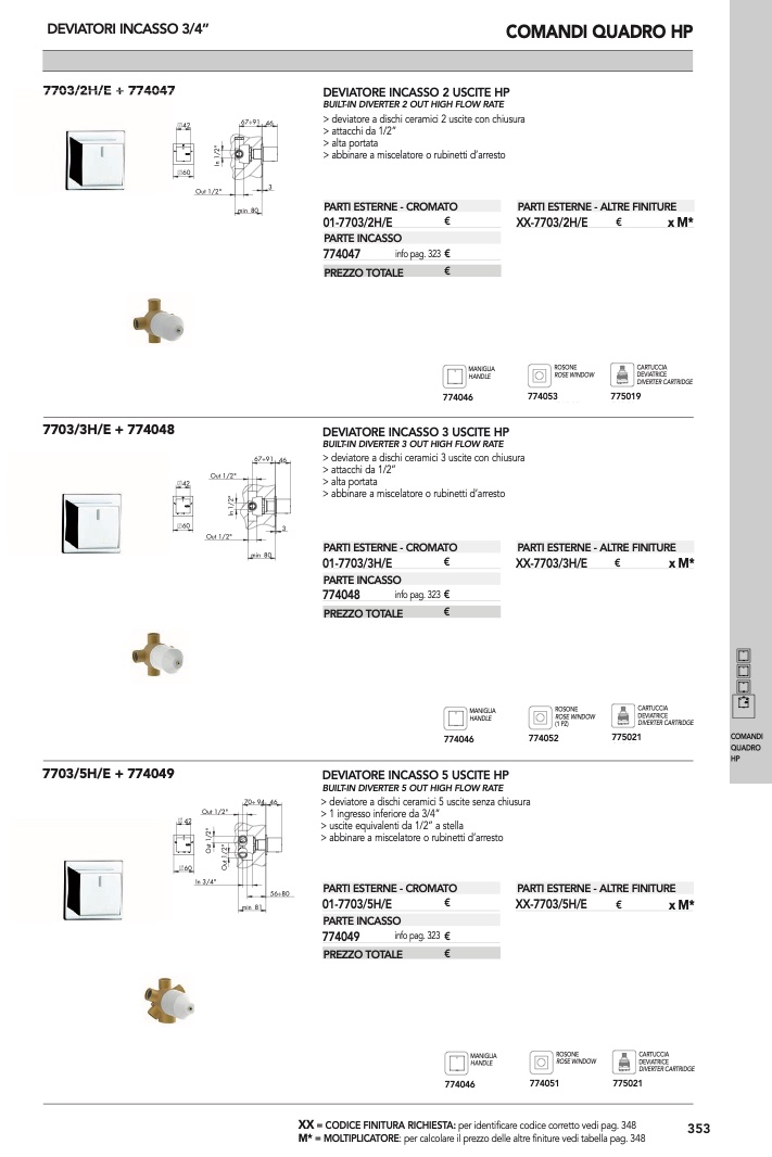 : per calcolare il prezzo delle altre finiture vedi tabella pag. 348