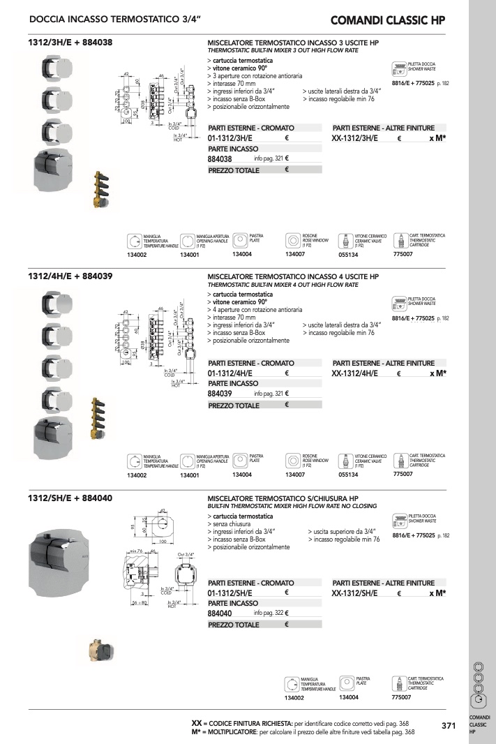 THERMOSTATIC BUILT-IN MIXER 4 OUT HIGH FLOW RATE