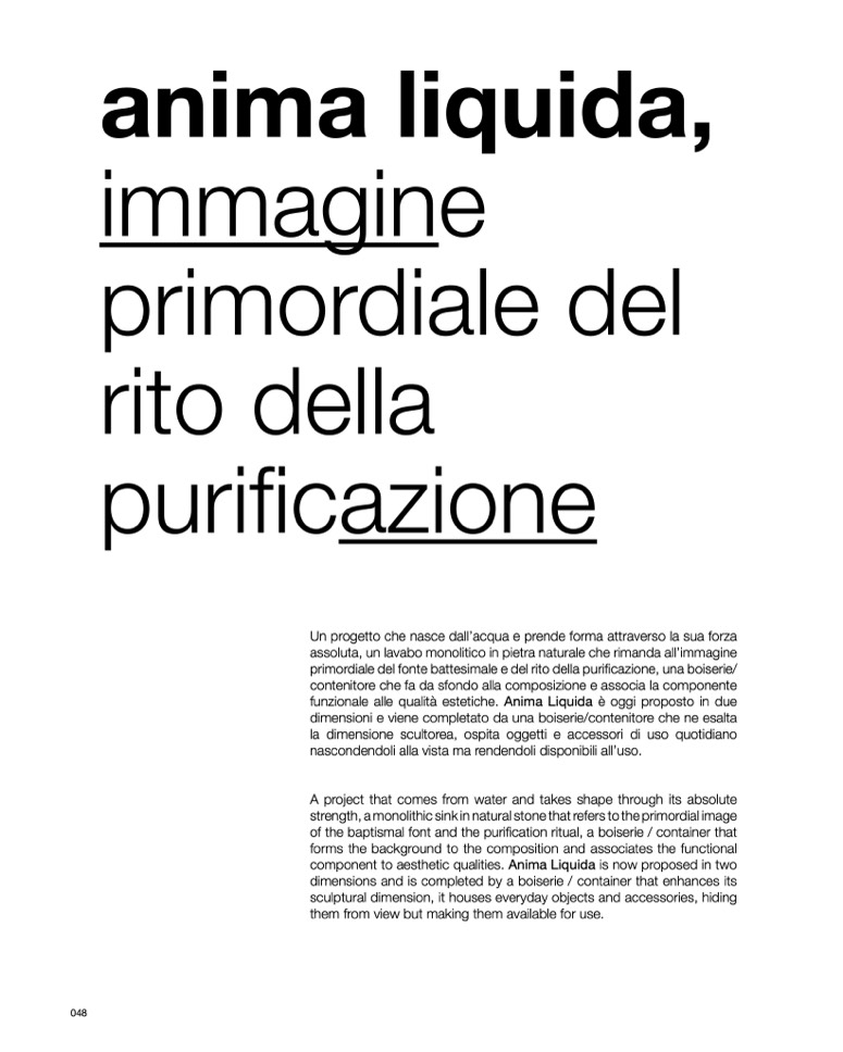 component to aesthetic qualities. Anima Liquida is now proposed in two