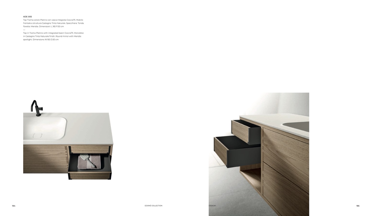 in Castagno Tinto Naturale finish. Round mirror with Meridia