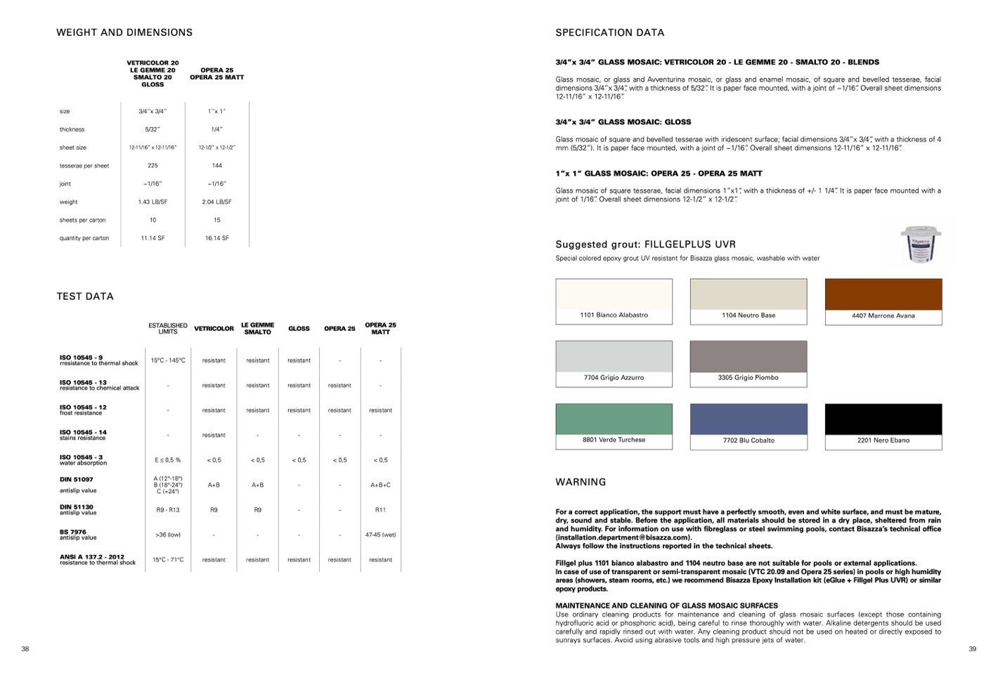 and humidity. For information on use with fibreglass or steel swimming pools, contact Bisazza’s technical office