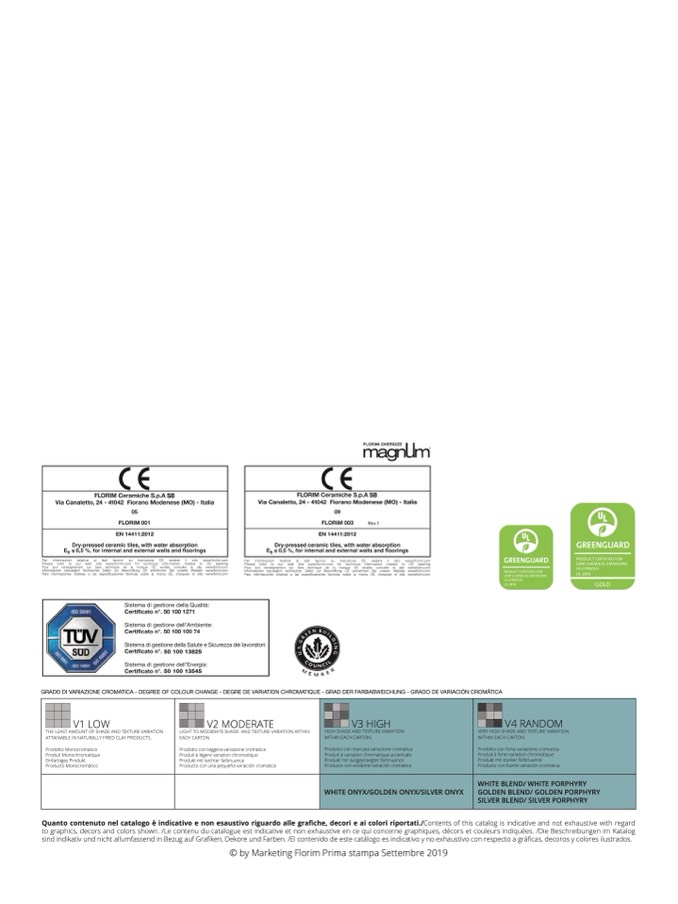 Para informaciones relativas a las especificaciones técnicas sobre la marca CE, chequear el sitio www.florim.com