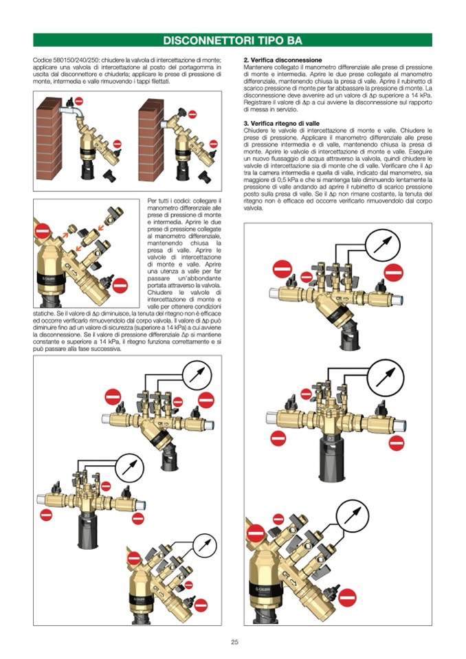 disconnessione deve avvenire ad un valore di Δp superiore a 14 kPa.