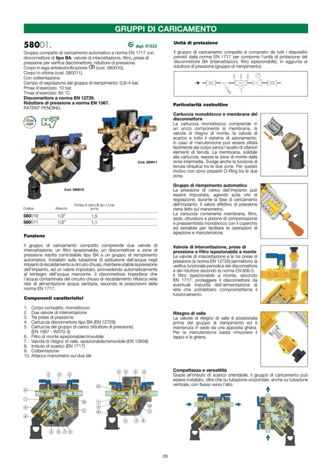 fica disconnettore, riduttore di pressione.