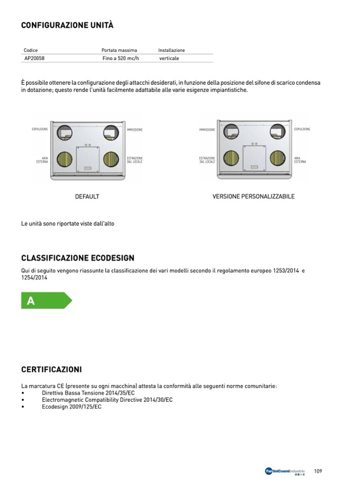 in dotazione; questo rende l'unità facilmente adattabile alle varie esigenze impiantistiche.