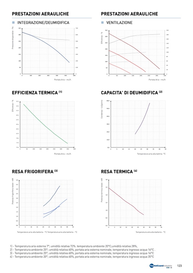 4) - Temperatura ambiente 20°; umidità relativa 60%, portata aria esterna nominale, temperatura ingresso acqua 35°C