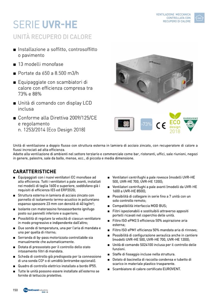 alta efficienza. Tutti i ventilatori a pale avanti, installati