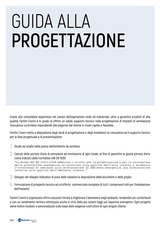qualità, Fantini Cosmi è in grado di offrire un valido supporto tecnico nella progettazione di impianti di ventilazione