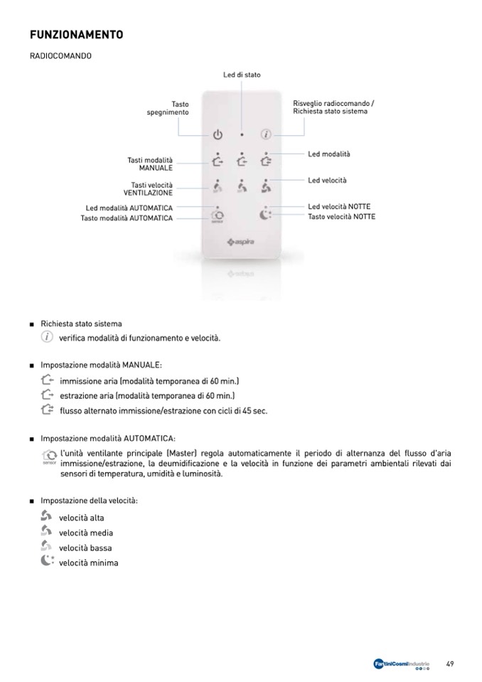 immissione/estrazione, la deumidificazione e la velocità in funzione dei parametri ambientali rilevati dai