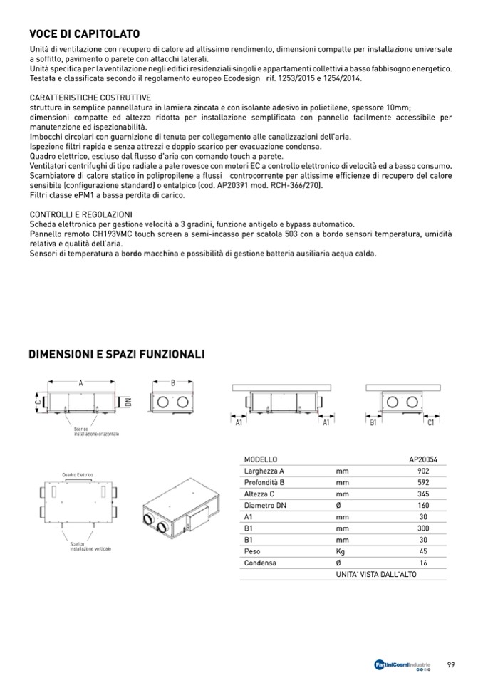 Unità di ventilazione con recupero di calore ad altissimo rendimento, dimensioni compatte per installazione universale