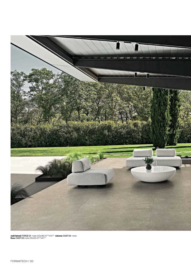 wall/island: FORGE 01 matte 120x280 471/4"x1101/4" volume: CAST 04 matt