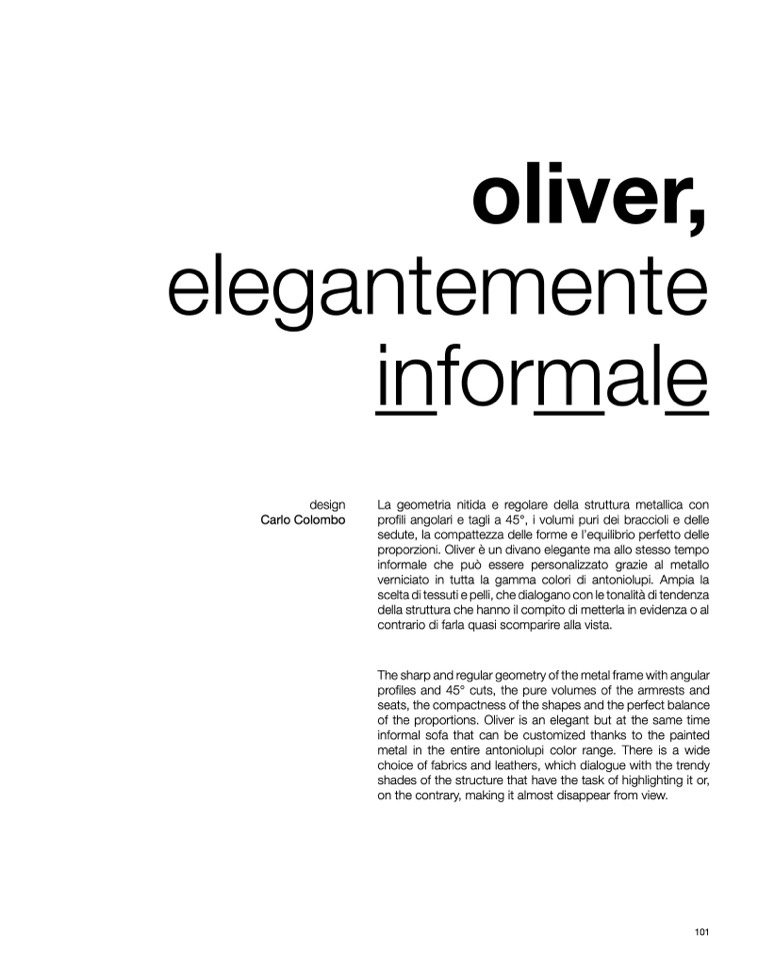 proporzioni. Oliver è un divano elegante ma allo stesso tempo