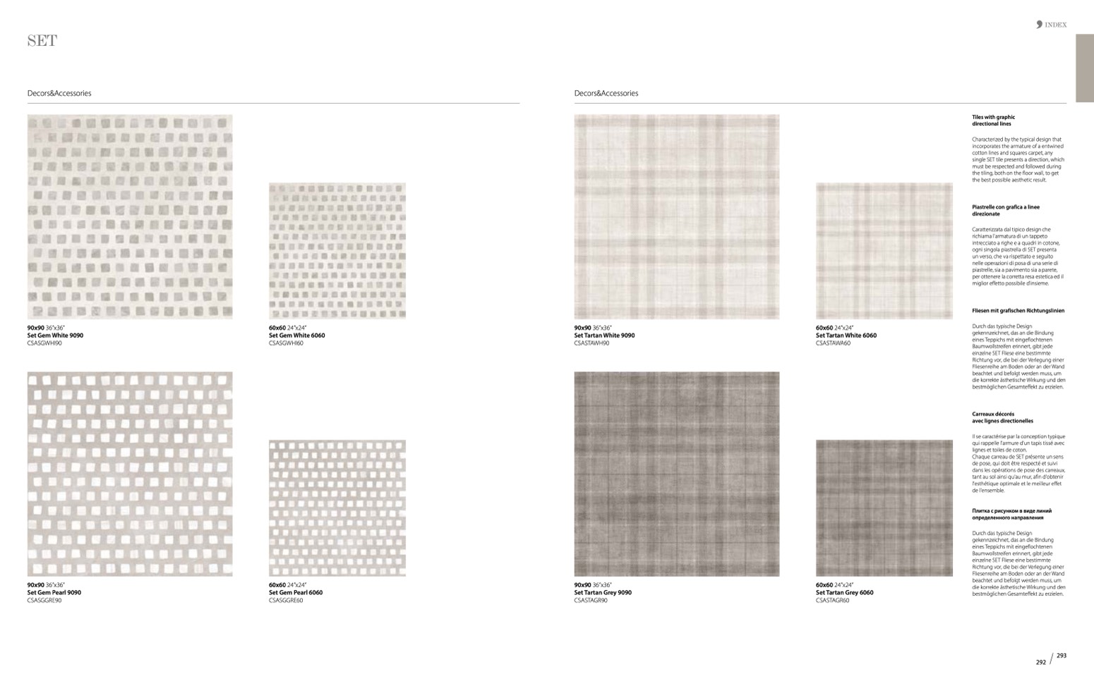 Chaque carreau de SET présente un sens