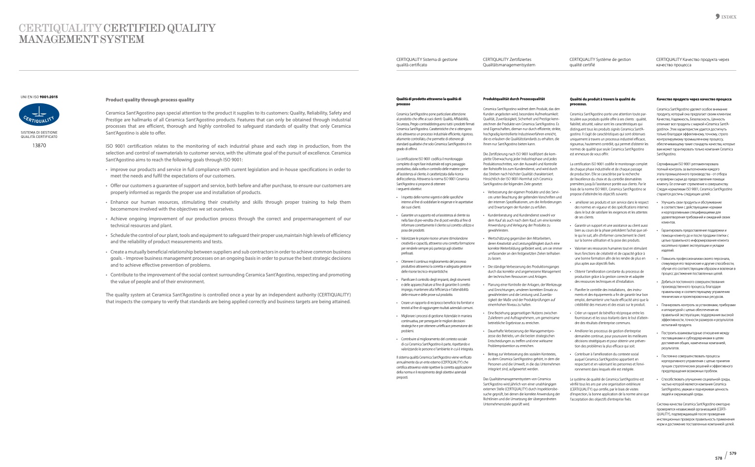 Следуя нормативам ISO 9001, Ceramica Sant’Agostino