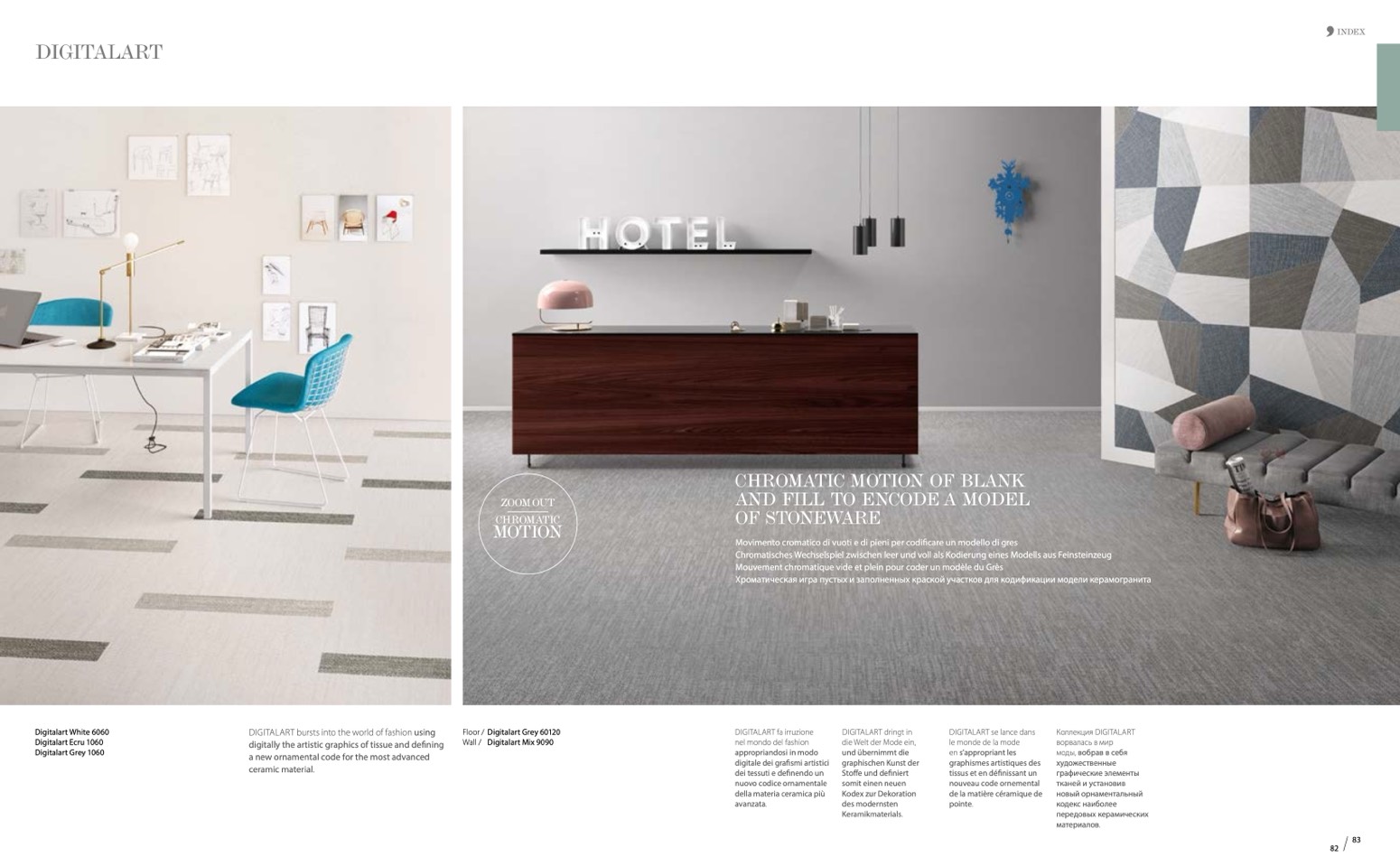 Movimento cromatico di vuoti e di pieni per codificare un modello di gres