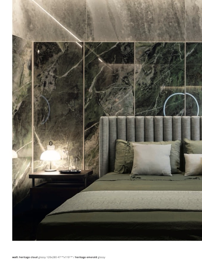 wall: heritage cloud glossy 120x280 471/4”x1101/4” / heritage emerald glossy