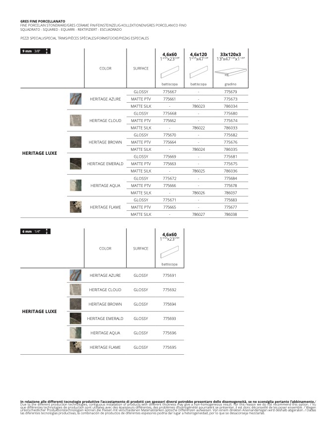 fferenti tecnologie produttive l’accostamento di prodotti con spessori diversi potrebbe presentare delle disomogeneità, se ne sconsiglia pertanto l’abbinamento./