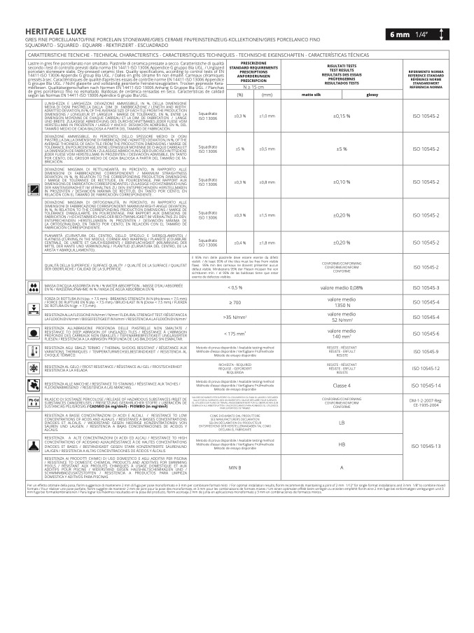 CARATTERISTICHE TECNICHE - TECHNICAL CHARACTERISTICS - CARACTERISTIQUES TECHNIQUES - TECHNISCHE EIGENSCHAFTEN - CARACTERÍSTICAS TÉCNICA
