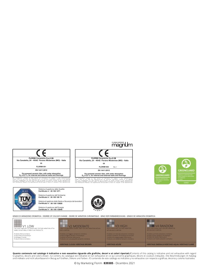 Per informazioni relative ai dati tecnici su marcatura CE vedere il sito www.florim.co