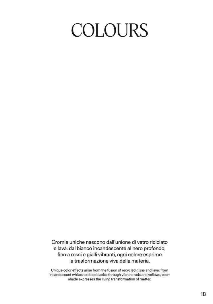 Unique color effects arise from the fusion of recycled glass and lava: from
