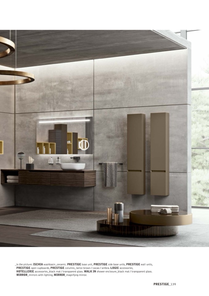 PRESTIGE open cupboards, PRESTIGE columns_larice brown / cacao / ambra. LOGIC accessories,