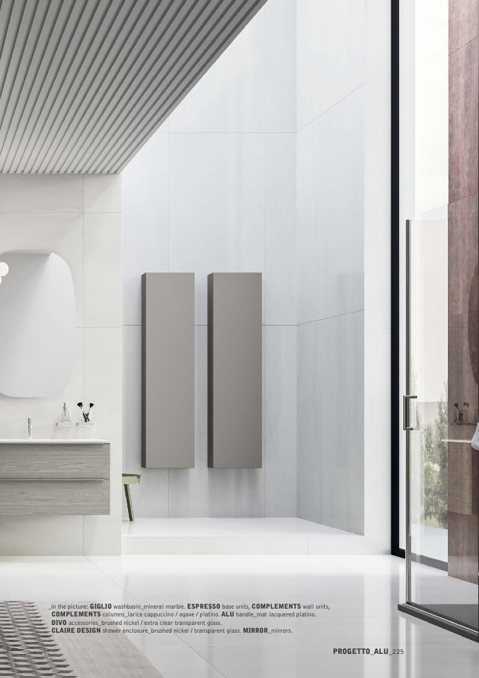 COMPLEMENTS columns_larice cappuccino / agave / platino. ALU handle_mat lacquered platino.