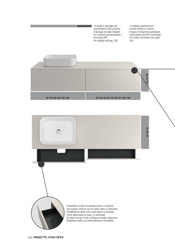 De laden kunnen in wit of antraciet worden uitgevoerd.