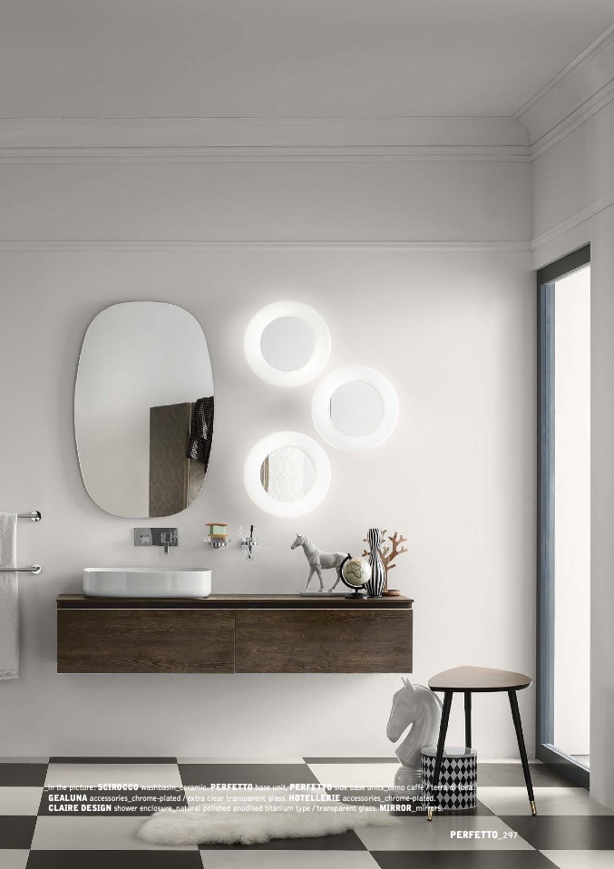 _in the picture: SCIROCCO washbasin_ceramic. PERFETTO base unit, PERFETTO side base units_olmo caffè / terra di luna.