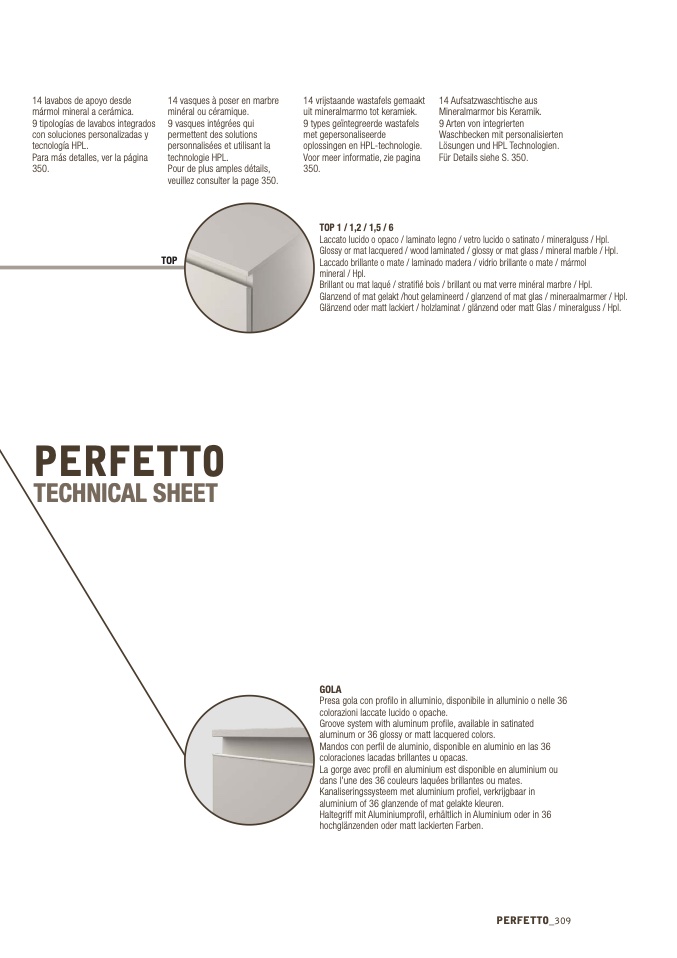 Glossy or mat lacquered / wood laminated / glossy or mat glass / mineral marble / Hpl.