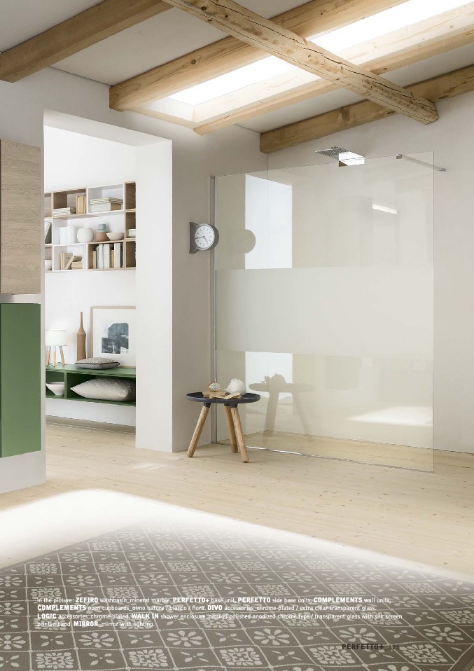 LOGIC accessories_chrome-plated. WALK IN shower enclosure_natural polished anodized chrome type / transparent glass with silk screen