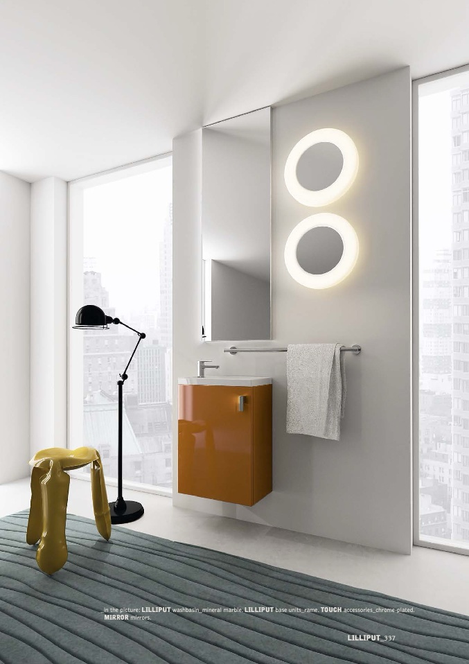 _in the picture: LILLIPUT washbasin_mineral marble. LILLIPUT base units_rame. TOUCH accessories_chrome-plated.