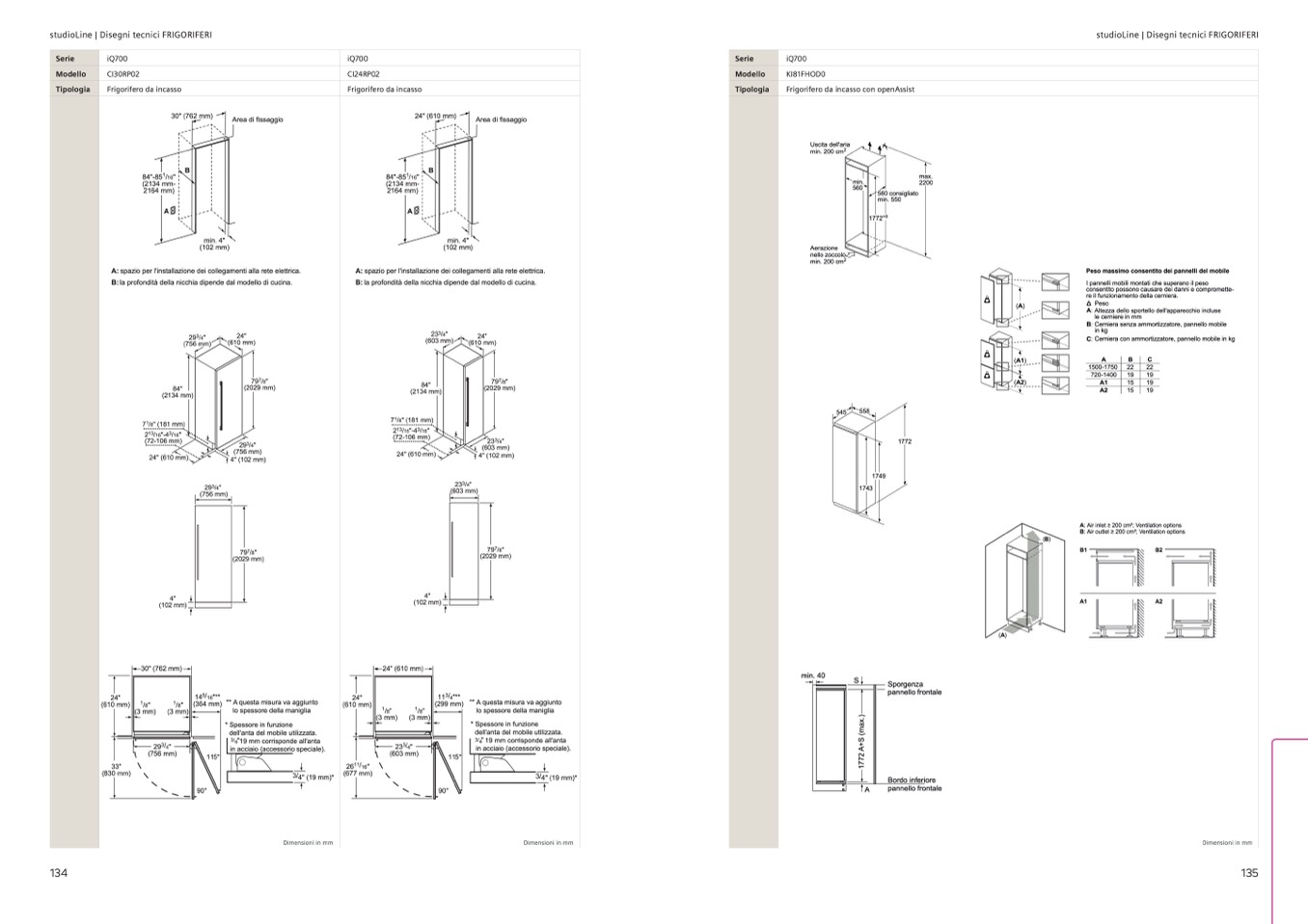 A: spazio per l'installazione dei collegamenti alla rete elettrica.