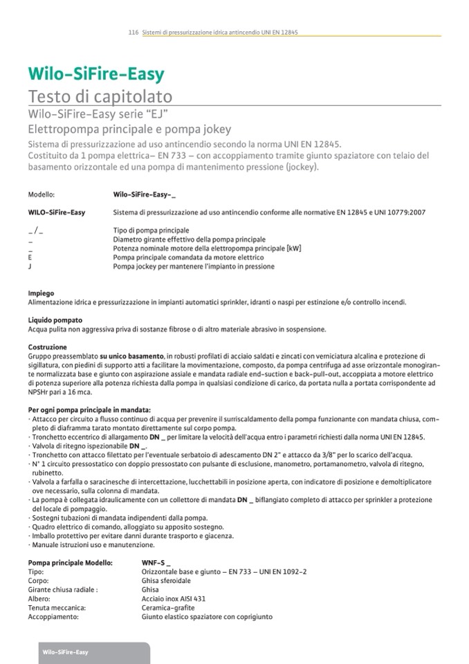 116 Sistemi di pressurizzazione idrica antincendio UNI EN 12845