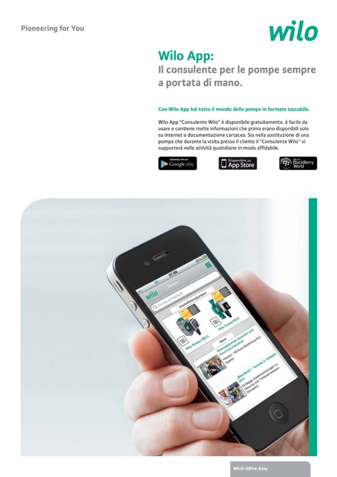 Wilo App “Consulente Wilo” è disponibile gratuitamente, è facile da