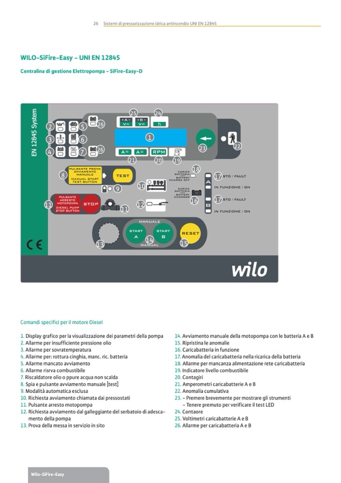 14. Avviamento manuale della motopompa con le batteria A e B