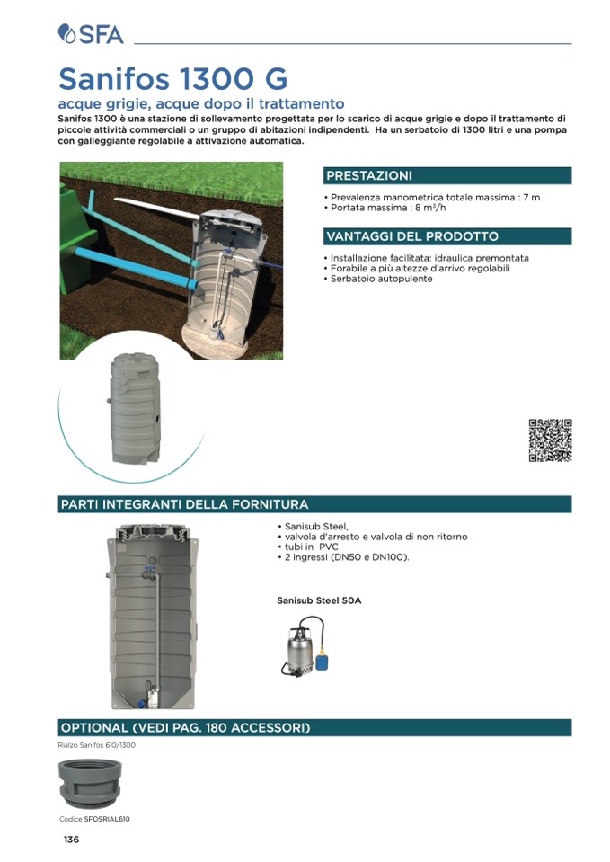 Sanifos 1300 è una stazione di sollevamento progettata per lo scarico di acque grigie e dopo il trattamento di