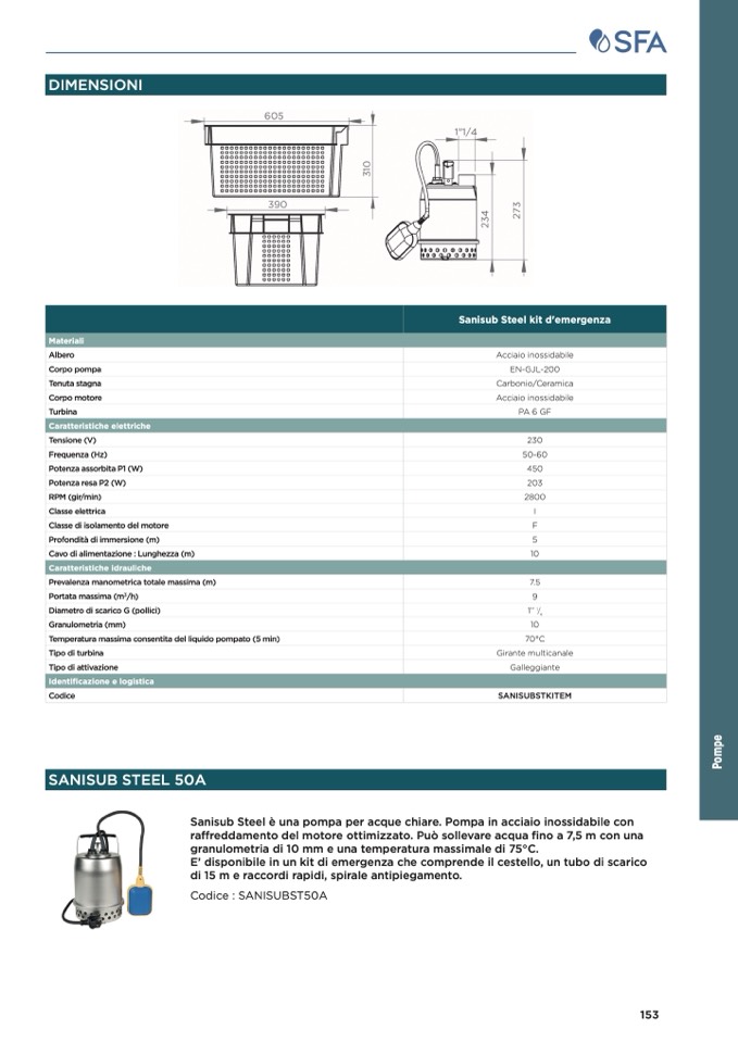 Sanisub Steel è una pompa per acque chiare. Pompa in acciaio inossidabile con
