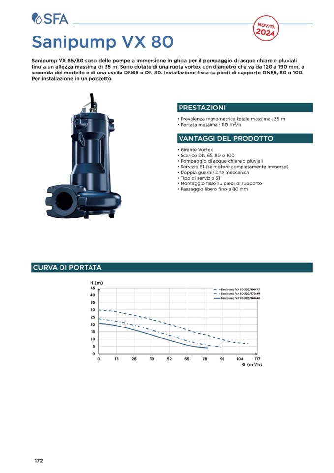 Sanipump VX 65/80 sono delle pompe a immersione in ghisa per il pompaggio di acque chiare e pluviali