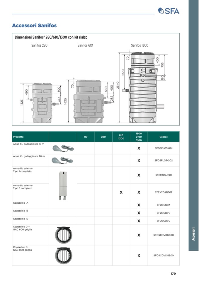 Dimensioni Sanifos® 280/610/1300 con kit rialzo