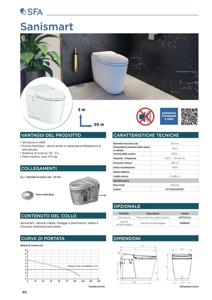 Sanismart, valvola clapet, fissaggi a pavimento, sedile a